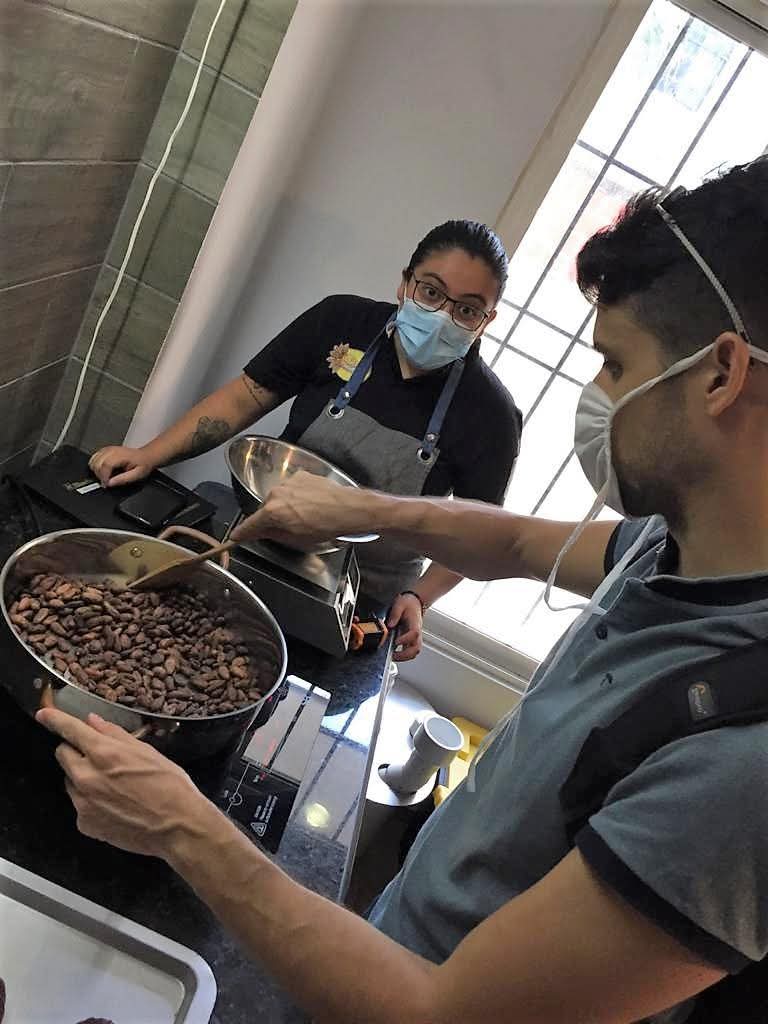 最後に、自分の作品を試食し、同じカカオで作られた職人製品の試食もお楽しみいただけます。お土産として、自分だけのチョコレート・バー2本、自分で焙煎したカカオ豆の袋、そしてチョコレートを使ったおいしいデザートをお持ち帰りいただけます。