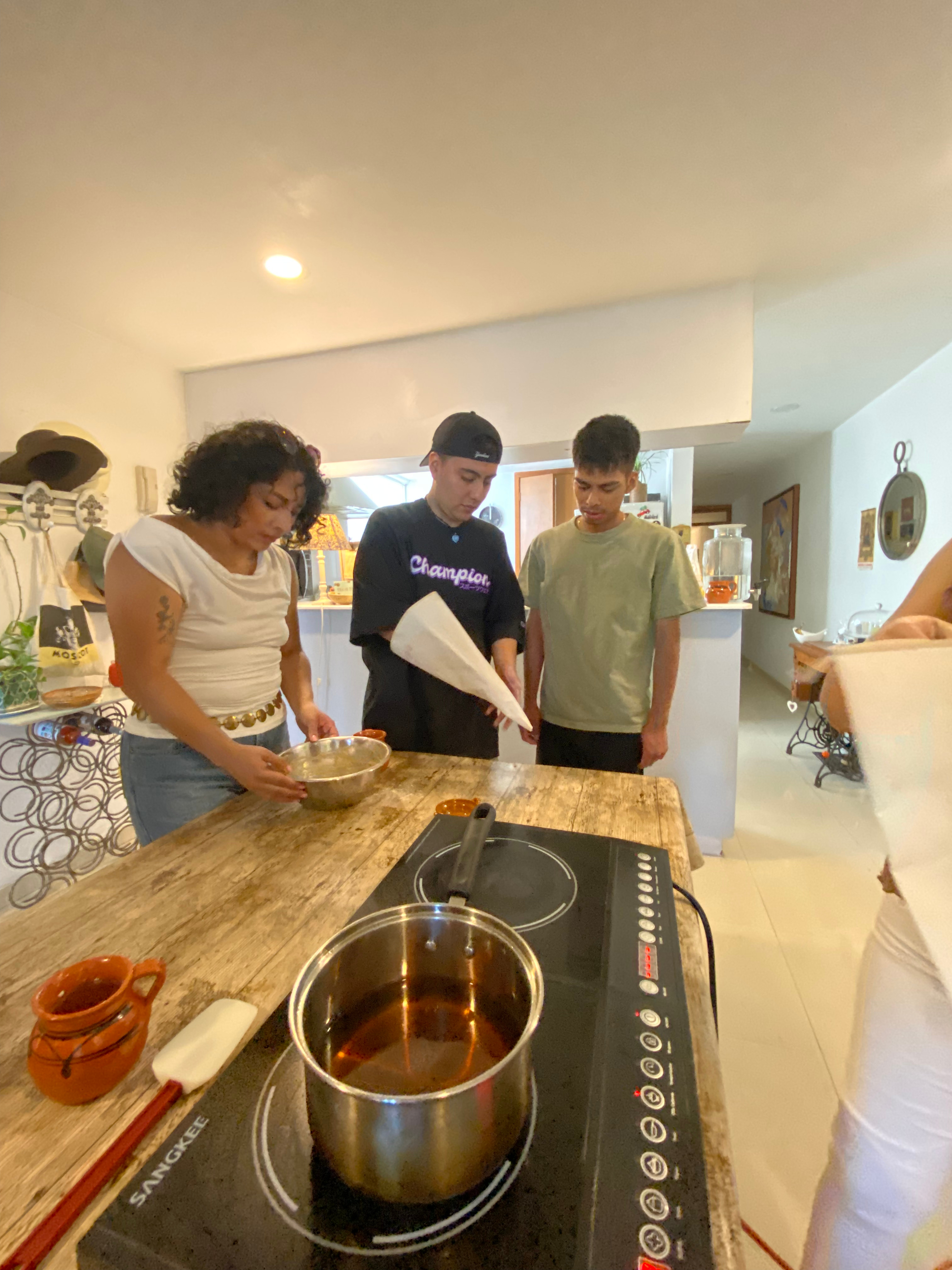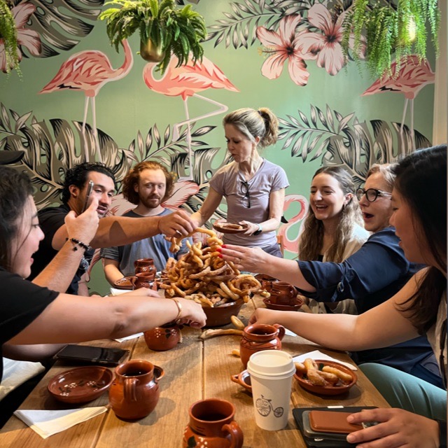 まずは、先住民によって生み出され、メキシコから世界へ広まった宝物 チョコレートの歴史 を学びます。その後、腕まくりをして、本格的なチュロス作り に挑戦。生地作りから伝統的な揚げ方まで丁寧に学び、サクサク黄金色のチュロスを完成させます。